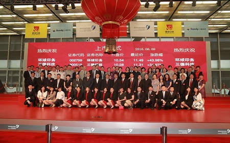 西安環(huán)球印務股份有限公司于2016年6月8日在深交所正式掛牌上市,股票代碼:002799,股票簡稱:環(huán)球印務。這是陜西省第44家A股上市企業(yè),本次發(fā)行募集資金到位后,將全部投資于與醫(yī)藥紙盒包裝產(chǎn)業(yè)相關的生產(chǎn)和研發(fā)業(yè)務中去,項目的實施將進一步加強了環(huán)球印務醫(yī)藥紙盒包裝在主營業(yè)務中的份額,保證環(huán)球印務醫(yī)藥紙盒包裝獨立供應