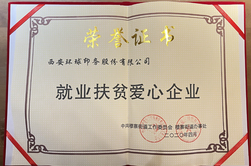 2020年,環(huán)球印務(wù)人力資源部聯(lián)合灞橋區(qū)政府駐村扶貧工作隊(duì),與穆寨街道辦事處簽訂了勞務(wù)輸出就業(yè)扶貧超市合作協(xié)議,進(jìn)行現(xiàn)場(chǎng)招聘,招入建檔立卡貧困員工 6 名,把“金飯碗”送到村鎮(zhèn)鄉(xiāng)鄰,為堅(jiān)決打贏脫貧攻堅(jiān)戰(zhàn)貢獻(xiàn)力量。